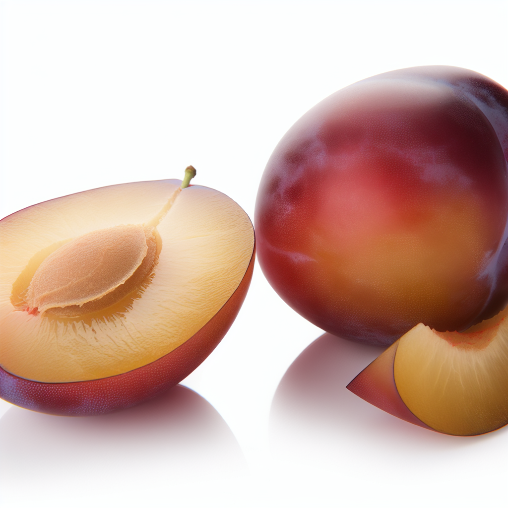 Plums are a type of fruit that belong to the stone fruit family, which includes peaches and cherries. They originated in China and have been cultivated for thousands of years. Plums are small, round, or oval with smooth skin that can be red, purple, yellow, or green. The flesh is juicy and sweet, with a tart flavor, and contains a single hard seed. Plums are grown on trees in temperate regions. They are eaten fresh, dried as prunes, or used in jams, jellies, and desserts. Plums are a popular snack and ingredient in many dishes.